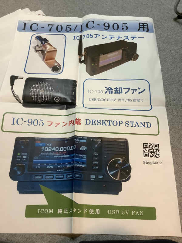 IC-705用の冷却ファンをリニューアルしました。今までは、DC13.5Vの品とUSB-C PD入力の2種類がありましたが、今回、DC13.8V/USB-C15V入力両対応に一本化しました。電源からファンユニットを経由してIC-705に給電されます。青色LEDはUSB-Cで12Vから15Vの電圧が得られた場合点灯するインジケータです。6月に入りましたらShop6502にて販売を開始する予定です。