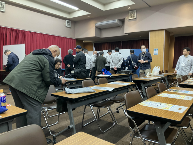 関ハム準備日当日、朝7時3分東京駅から新幹線で新大阪向け出発しました。新大阪からバスで伊丹空港近くのホテルにやってきました。ホテルからタクシーにて会場へ向かい、釣竿を立ててポスターを吊るし、机の周囲にフェンスと取り付けてディスプレイをほぼ完成させまし夕方から「関西自作の会」のミーティングにお邪魔させていただきました。