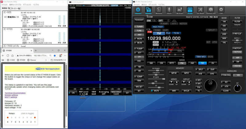 ほぼ毎日午前9時ごろから午後9時頃まで、10GでFMトランスポンダ―を試験運用中です。横浜市港南区からパラボラを富士山大山へ向けています。手動で動作開始・停止していますので運用時刻は不定期に近い状態です。来年の本格運用に向けてプログラムの改修中です。聴こえていましたら10秒以内でコールしてみてください。受信できるとシステムが録音して自動応答・再生します。DE JH1IFZ