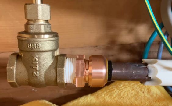 温水配管を修理しました。床下でバーナーを使うのは避けて、ちょっと値ははりますが接続用の部品を買ってきました。