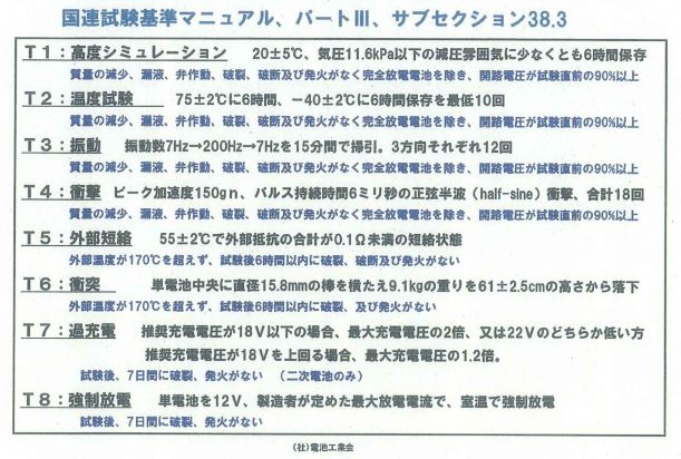 組電池に使用されているリチウムイオン電池はすべてUN38.3のテストに合格している品である必要があります。Shop6502で製品化しているリチウムイオン組電池は、日本国内で製造された日立マクセルもしくはパナソニックの品で、それぞれのメーカー施設内でUN38.3のTest1からTest8までの試験に合格した品であることを確認しています。 さらに、これらのバッテリーは別に規定されている品質管理プログラムに従って製造されています。 各製品すべてにUN38.3の合格標示をつけることや証明を発行することは困難なので、現時点ではメーカーの試験結果を信頼して取り扱われているようです。