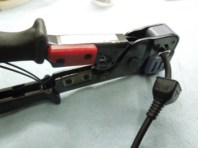 あとはRJ45の圧着工具で普通に圧着し、ゴムブーツをスライドして戻せば完了です。 |