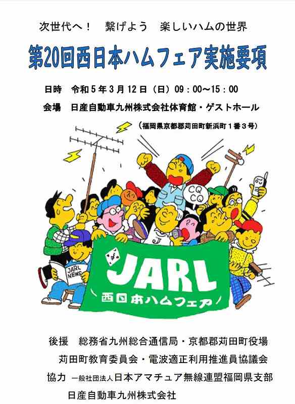 準備状況西日本ハムフェアに リチウムイオン電池研究会のメンバーとして出展をいたします。 第20回 西日本ハムフェア ホームページはこちら 2022年9月15日 出展申込 クラブ名「リチウム・イオン電池研究会 出展区分「一般展示」区画数2 2022年11月10日 出展承認・諸費用払い込み依頼受領 11月14日振込完了 西日本ハムフェア 開催情報
