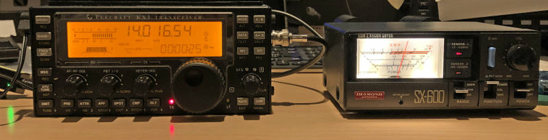 USB type-C PDポータブルバッテリーに USB-Cto12V アダプタを接続し、KX3 で 10W 送信している様子です。IC-705でも10W ? ! <写真クリックで拡大します>