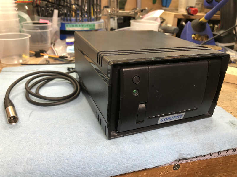 Arduinoを使った開発のジャーナルプリンタ部完成?しました。ケースはいつものSS無線で購入したテイシンのTK-22を使用、ぴったりと思ったら僅かに幅が足りず、ケースの内部を削ることになりました。完成してから気づいたのですが、この形態だとペーパーをカットし辛いのです。次はケースの上面にプリンタを実装しよう!そうすればケース内部の邪魔な支柱も避けられる。