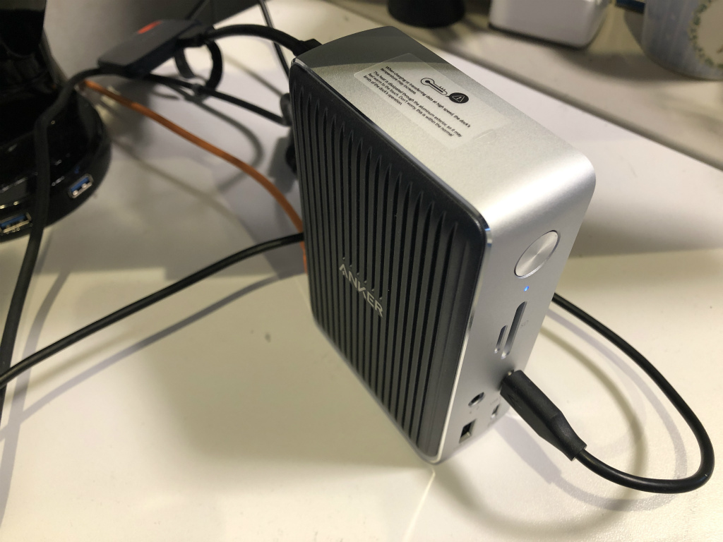 ANKER PowerExpand Elite 13-in-1 Thunderbolt 3 Dock を一カ月前に購入しました。 MacBook Air(M1,2020) macOS Moterey で使用しています。MacとPowerExpandとはUSB-Cケーブル2本を接続してもEthenet接続が使用出来ませんでした。仕方なく、PowerExpandの後方のUSB3ジャックにApple USB Ethernet アダプタを挿入して使用していました。暫くこの状態で使用していたのですが PowerExpand Eliteが起動時にEthernet接続を読むことに気づき、もう一度USB-Cケーブル2本でMacに接続し、PowerExpand をリブートしたら使用出来るようになりました。しかし、しかし、MacBook Airに2本のUSB-Cケーブルを接続しなければならんと言うのは、ちっとも改善にならんかったような。。。元に戻そうかなぁ!?”ひょっとして” MacAirのUSB-Cケーブルを抜いてみたら、動いてる!。何だったんた???