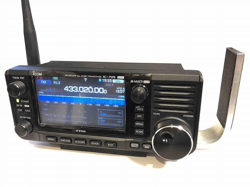 関ハムと東海ハムで気付いたことの二つ目は、IC-705は移動用に使用されるよりも、小型QRPの固定用に使用されているのではないか?ということです。ハンドグリップの話をしたときに、ICOM純正のMBF-705傾斜台を購入されている方が多いのです。それではグリップを必要とされる方は少ないですね。