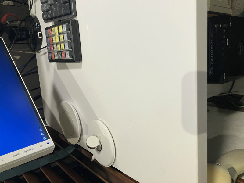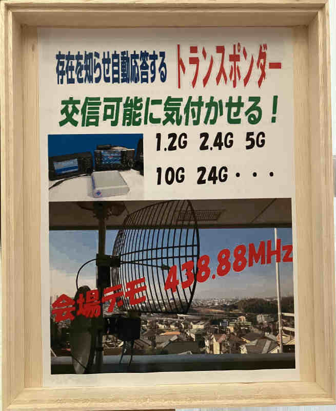 ハムフェア2025のディスプレイを作りました。関ハムでの学習から騒音環境でも聴こえるように来場者の目の高さで音を出すようにします。額縁風の「トランスポンダ―」ポスターはスピーカーになっています。また「IC-705アンテナステー」や「IC-705ファン」の説明をする際にIC-705を持ち上げなければならなかったので、机の上で回転するディスプレイを作りました。上には「アンテナステー」と「USB-C&13.8V両用ファン」を装着したIC-705を、下には「トランスポンダー」を動作状態で回転ながら展示します。会場内でのデモ運用周波数は438.88MHzFMです。自動応答します。