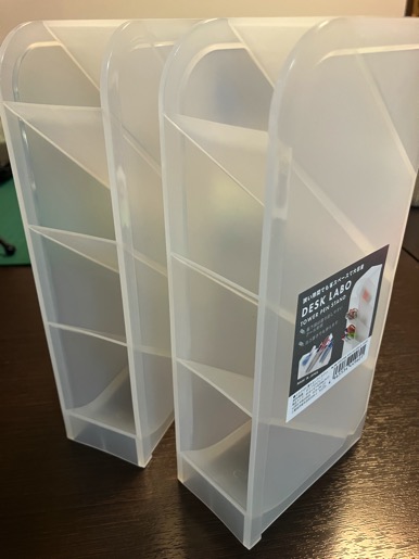 千代田区神田淡路町の百円ショップで見つけたDESK LABO TOWER PEN STAND という品はペンや小型やすり、小型ドライバー、カッターナイフなどのすぐに手に取りたい小物を保管するのに便利で5個も買ってしまいました。引き出しやトレイの中を探さなくて済みます。