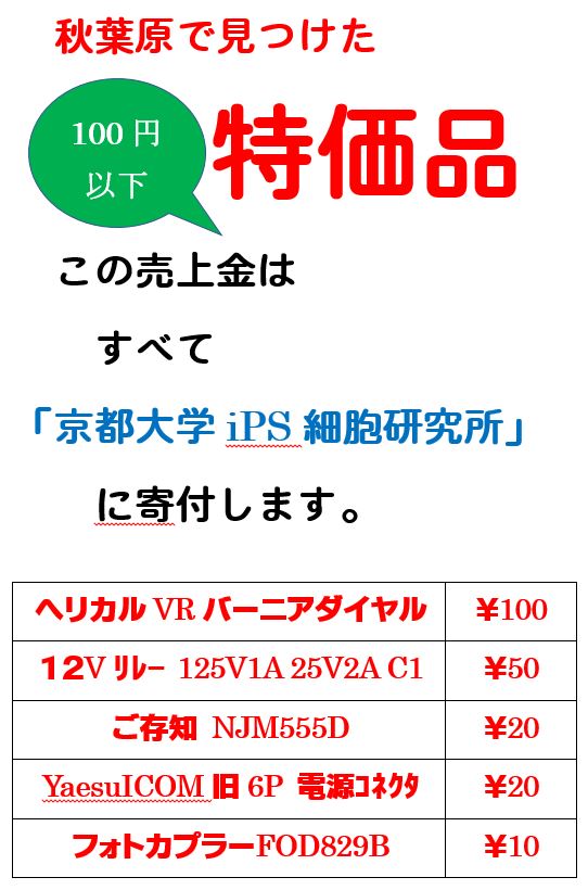東京駅発の新大阪往復切符を購入してあります。安く上げるために大人の休日倶楽部で新幹線ひかり号の利用です。まあ、暇だし、時間十分あるので。。。18日準備日の早朝、東京駅から出発します。 大阪の友人から、「関西自作の会」ミーティングへのお誘いをいただきました。会場準備が終わり次第、池田から梅田に移動して東森町へ向かう予定です。 関ハムの出展者ページにも掲載しましたが、リチウムイオン電池研究会Shop6502ブースで5000円以上お買い上げの方にICOM&KENWOODハンディー機用USB充電ケーブルを差し上げます。(最近はどこでも売っているのでもうShop6502での扱いはやめましたHi)