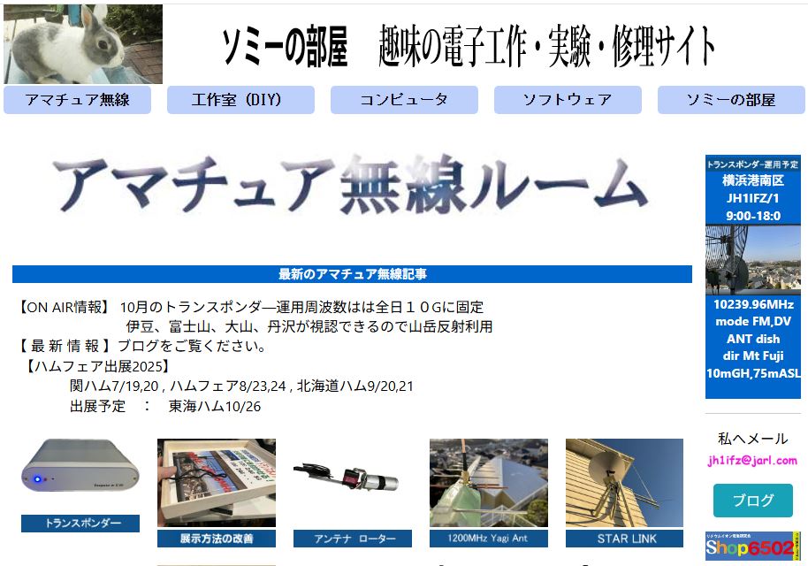 ほぼ毎日午前9時ごろから午後9時頃まで、10GでFMトランスポンダ―を試験運用中です。横浜市港南区からパラボラを富士山大山へ向けています。手動で動作開始・停止していますので運用時刻は不定期に近い状態です。来年の本格運用に向けてプログラムの改修中です。聴こえていましたら10秒以内でコールしてみてください。受信できるとシステムが録音して自動応答・再生します。DE JH1IFZ